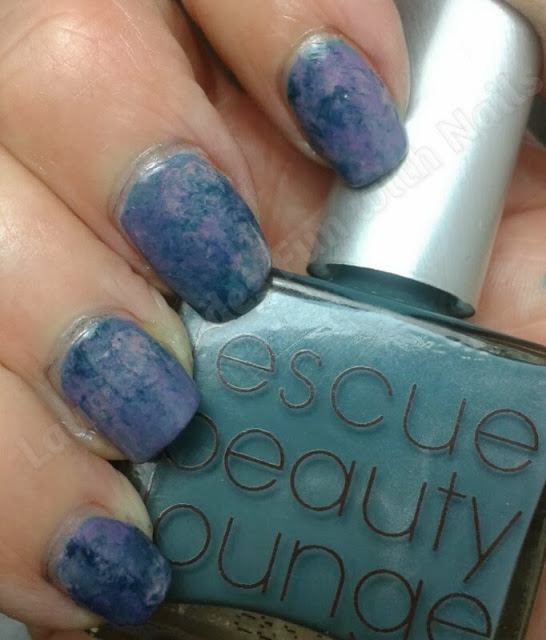 I did this late last night(or early this morning) so I was somewhat tired and that made me rush things a bit, which can be seen on my middle finger. I was too careless when I removed the two pieces of tape that were overlapping and there fore the wet polish flowed out a bit.