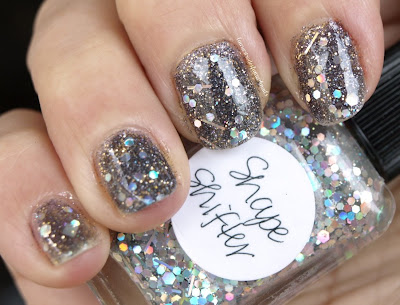 Recently Lynnderella announced All Hallow's Eve will be discontinued which I think is such a shame. This is green gorgeousness in a bottle and really shows off what is so great about her polishes: Deep, complex and filled with an incredible amount of different glitters in all shapes and sizes. Feast your eyes on these relatively okay pictures: